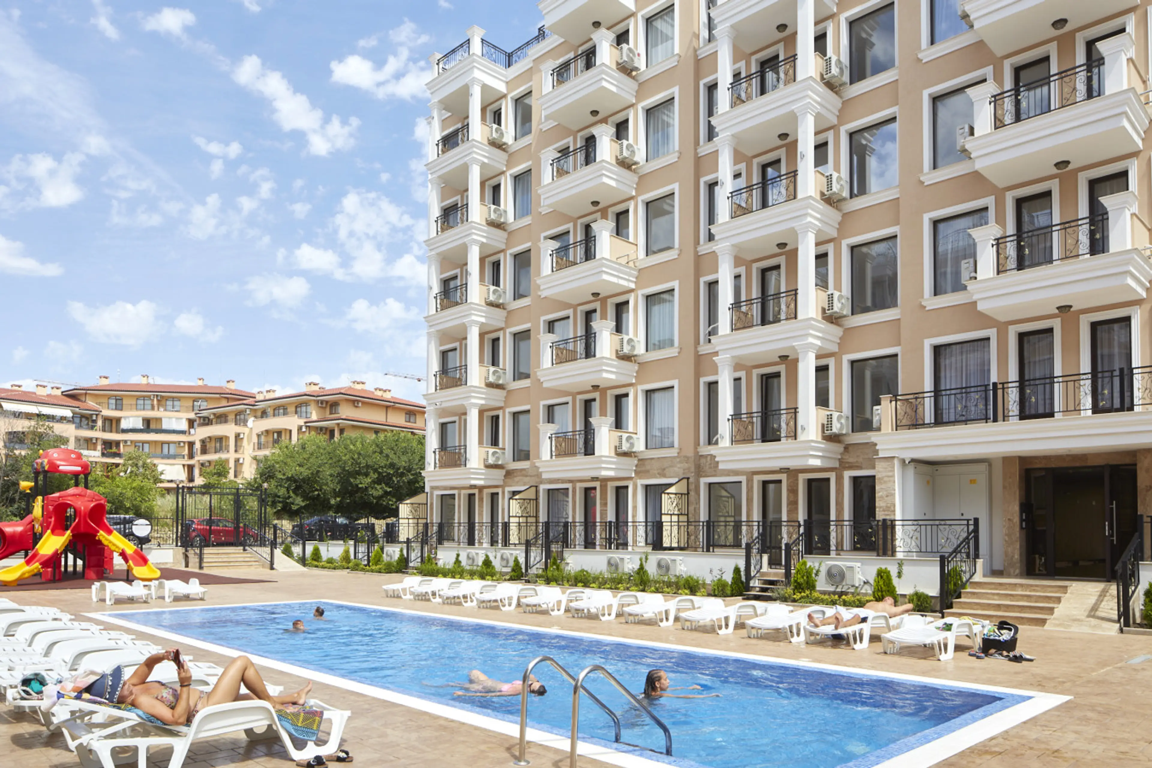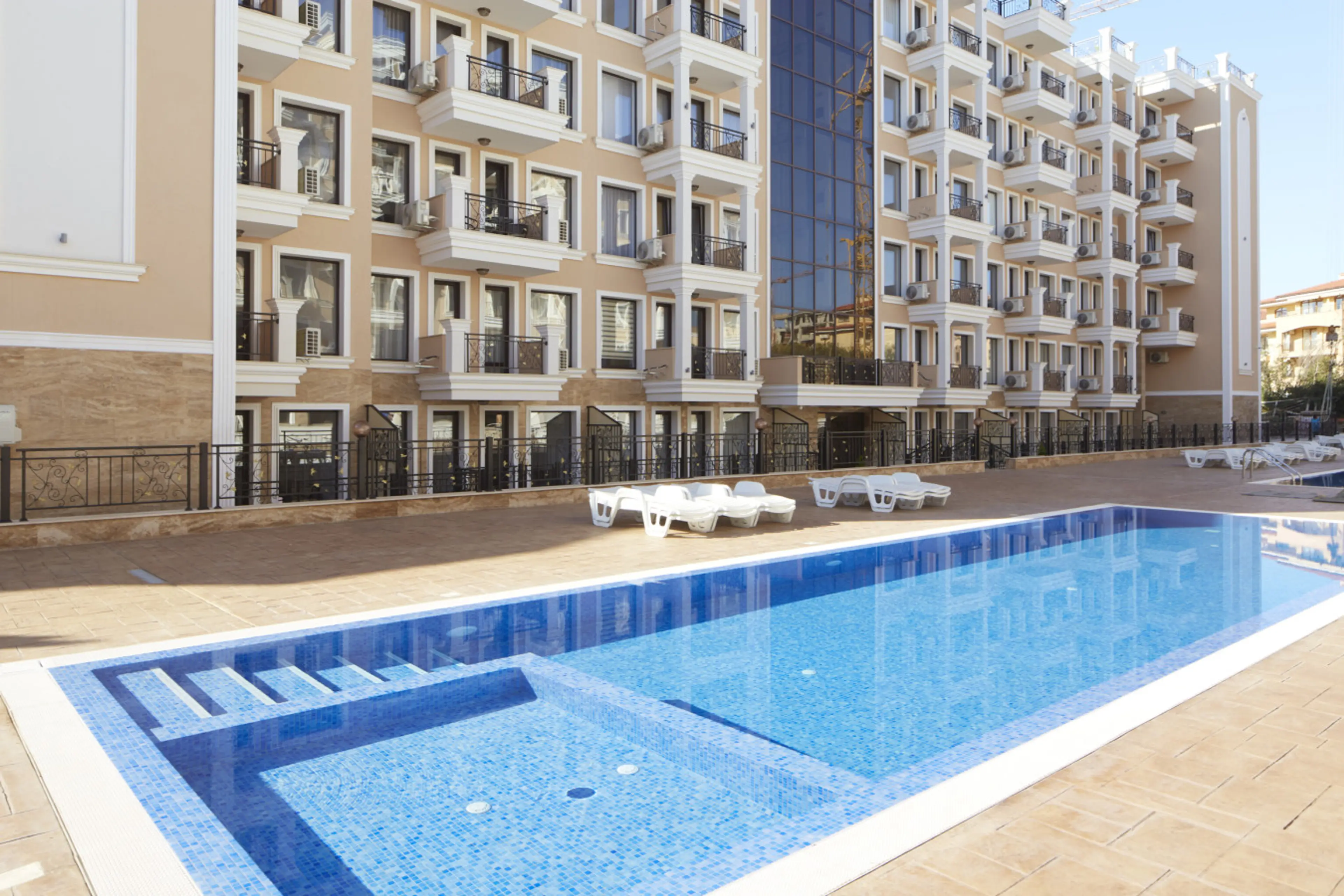 Polarstar Beach Resort ist eine moderne Ferienanlage mit stilvoll eingerichteten Premium Apartments in bester Lage von Sveti Vlas. Die Unterkunft verbindet Komfort, Eleganz und Urlaubsatmosphäre. Die Gäste schätzen besonders die großzügigen Balkone, den gepflegten Poolbereich sowie die Nähe zum St...