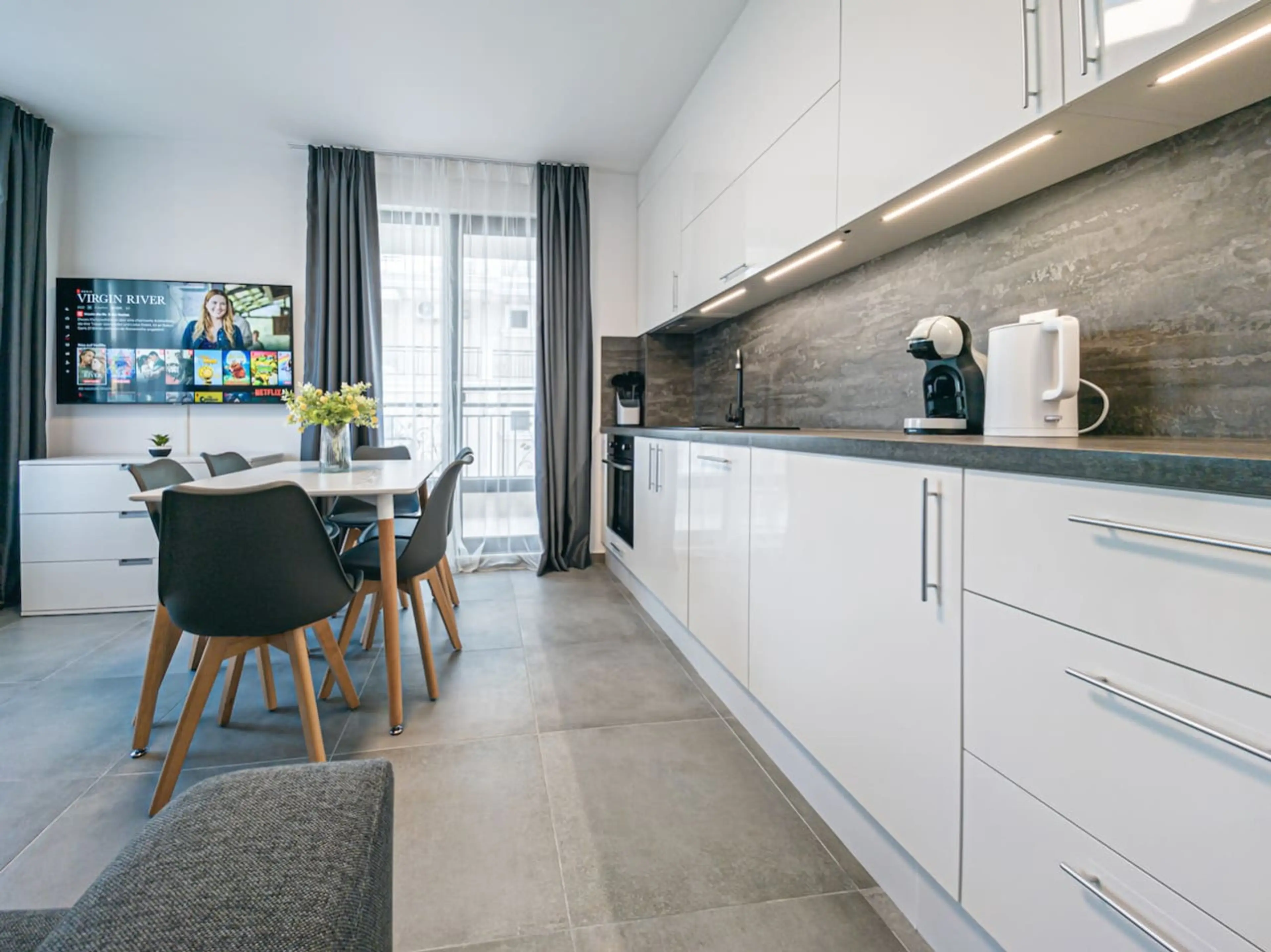 Willkommen im Mary Beach – Apt 20A, Ihrer modernen Ferienwohnung nahe dem Strand in Sveti Vlas. Die helle Wohnung bietet einen offenen Wohnbereich mit Küche, gemütlichem Sofa und Balkon zum Entspannen. Die gepflegte Anlage verfügt über einen Pool und liegt in ruhiger Lage, Restaurants und Einkaufsmö...
